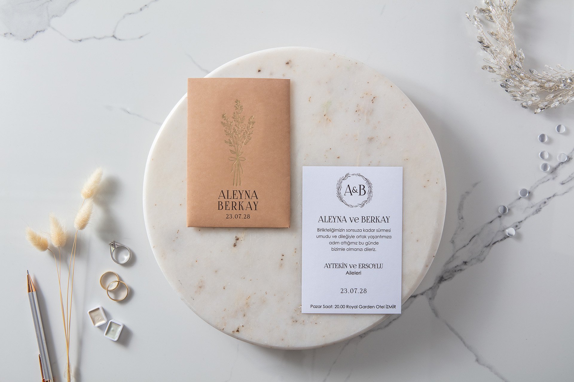 ❤️ Davetiye aksesuarları ve zarf fiyata dahildir.